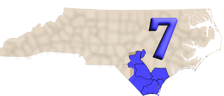 North Carolina’s 7th Congressional District is a diverse and politically mixed area that stretches from the coastal city of Wilmington inland through parts of Cumberland and Robeson counties.