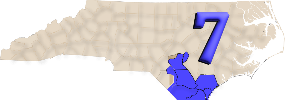 North Carolina’s 7th Congressional District is a diverse and politically mixed area that stretches from the coastal city of Wilmington inland through parts of Cumberland and Robeson counties.